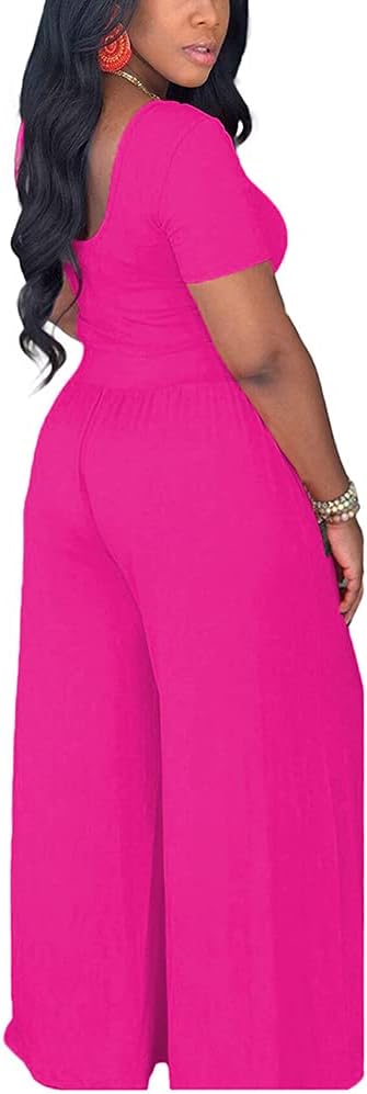Two piece outfits for women, Sexy backless crop tops for women + High waist wide leg trousers, Solid color 2 piece outfits for women, Womens casual tracksuit sweatsuit, U neck sexy club outfits for women, 2 piece yoga sets for women.