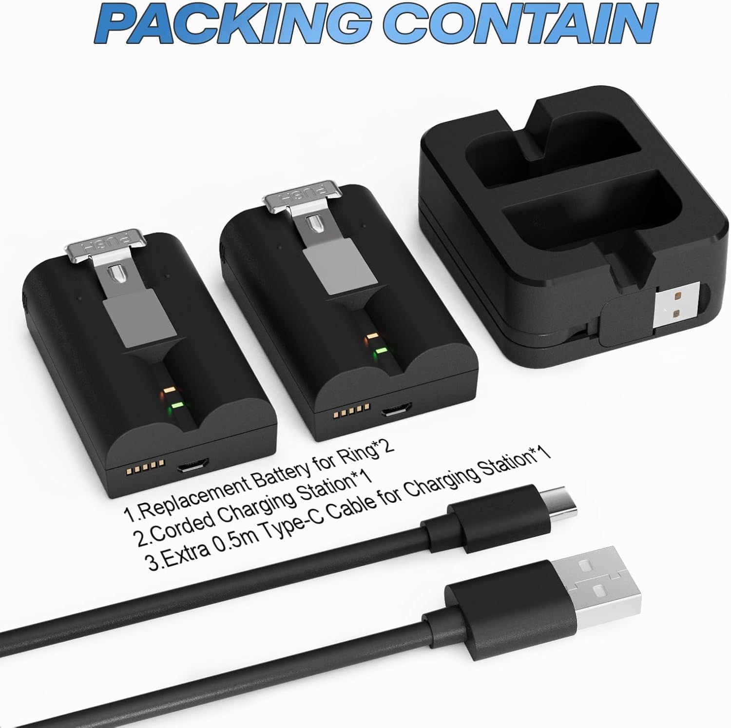 2Pack 6040mAh Replacement Battery with Charger Station ring battery 2 packring battery 2 pack