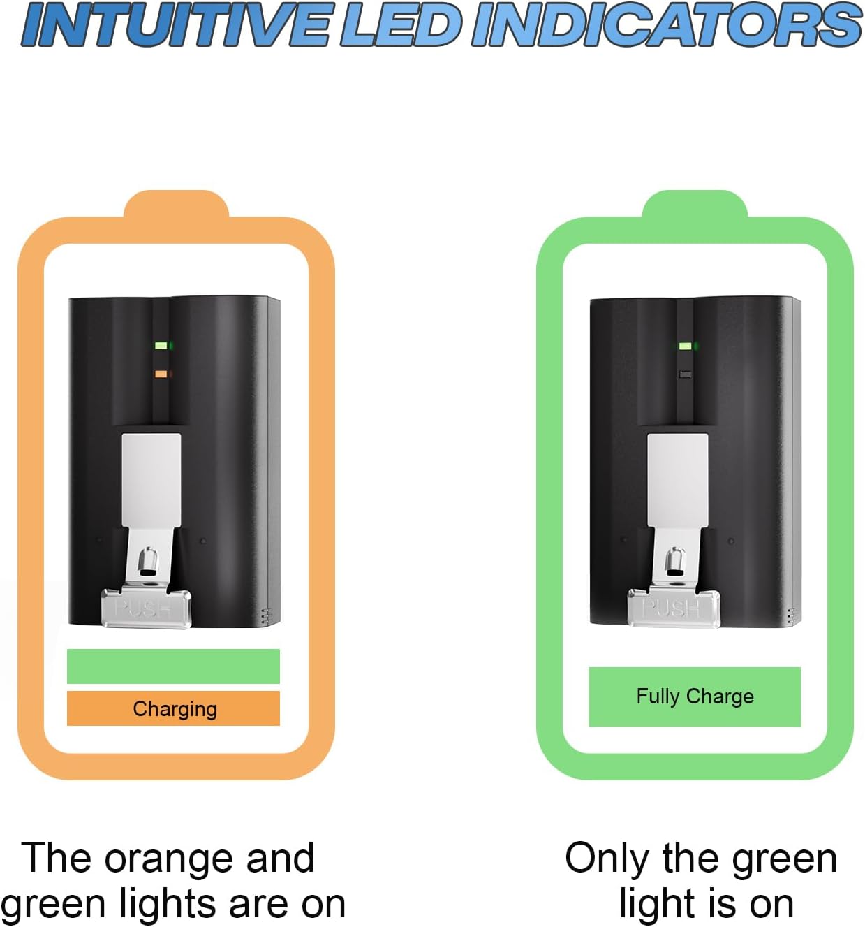 Intuitive LED Indicators: Our ring doorbell battery replacement features user-friendly LED indicators that make it easy to determine the charging status. When both red and green lights are illuminated, it indicates that the battery is currently charging. Once only the green light is on, it signifies that the battery is fully charged and ready to go.
