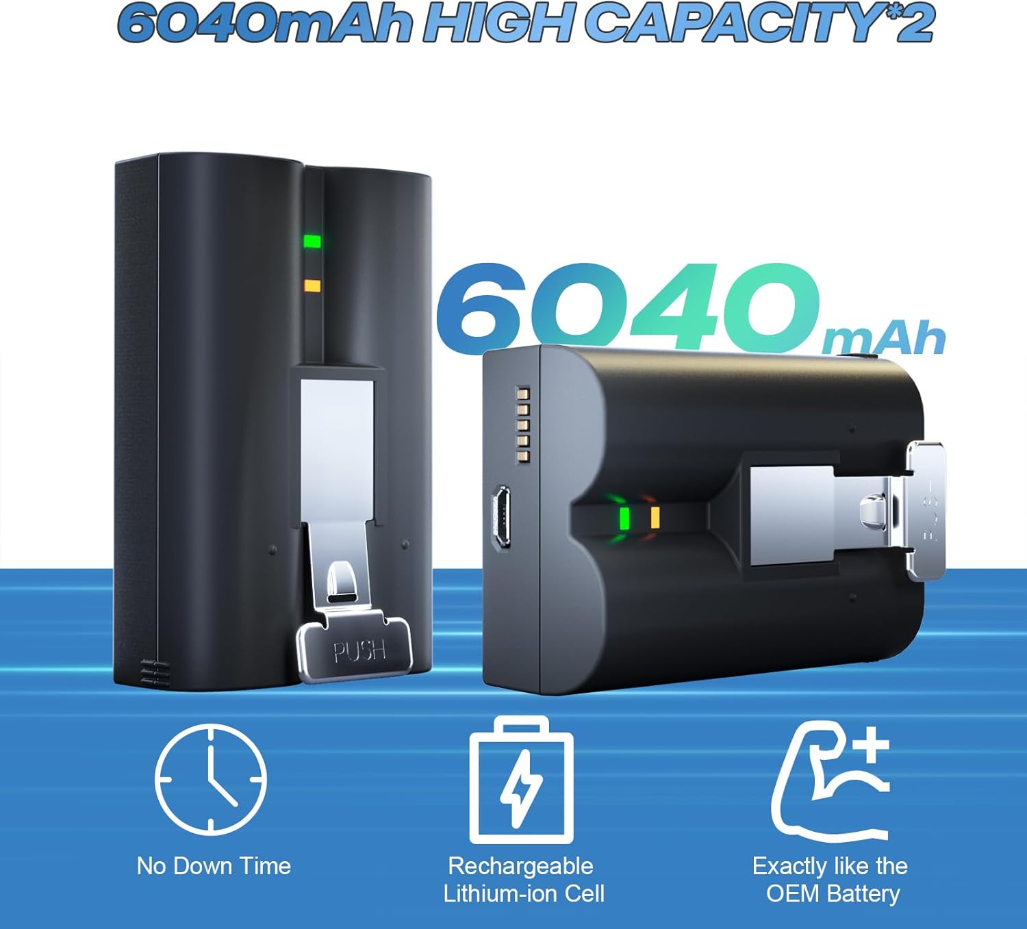 2Pack Replacement for Ring Doorbell Battery, 6040mAh Rechargeable Ring Camera Battery with Charger Station, Compatible with Ring-Video Doorbell 2/3/3plus/4, Stick Up Cam and Spotlight Cam