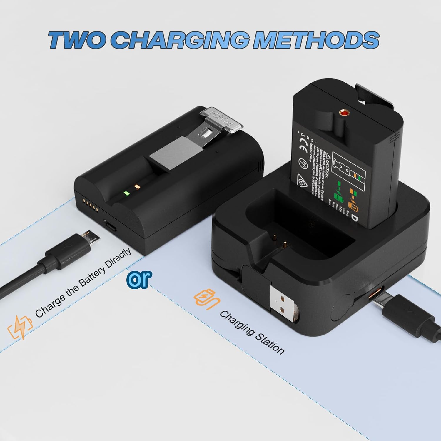 【Versatile Charging Convenience】 Our ring camera battery 2 pack can be conveniently charged using any 5V USB ports, such as a PC, car charger, or power bank. Additionally, our charger station enables simultaneous charging of up to 2 Ring batteries. This allows you to effortlessly swap out the batteries of your Ring cameras, reducing the downtime and ensuring uninterrupted surveillance.