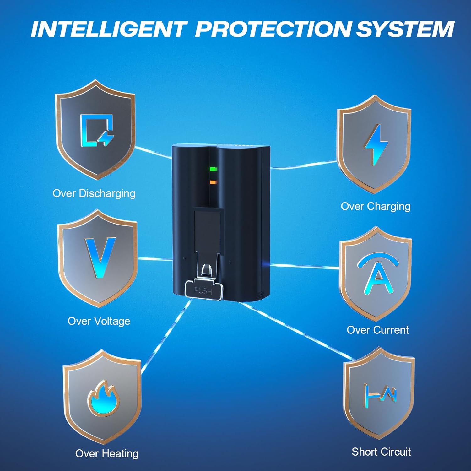 High Quality Battery Cells: We have upgraded our batteries with long lasting power Li-ion cells, boasting an impressive capacity of 6040mAh. This means your Ring cameras will have a continuous and reliable source of power. Rest assured, our ring camera battery can be charged and discharged without any negative impact, giving you peace of mind.