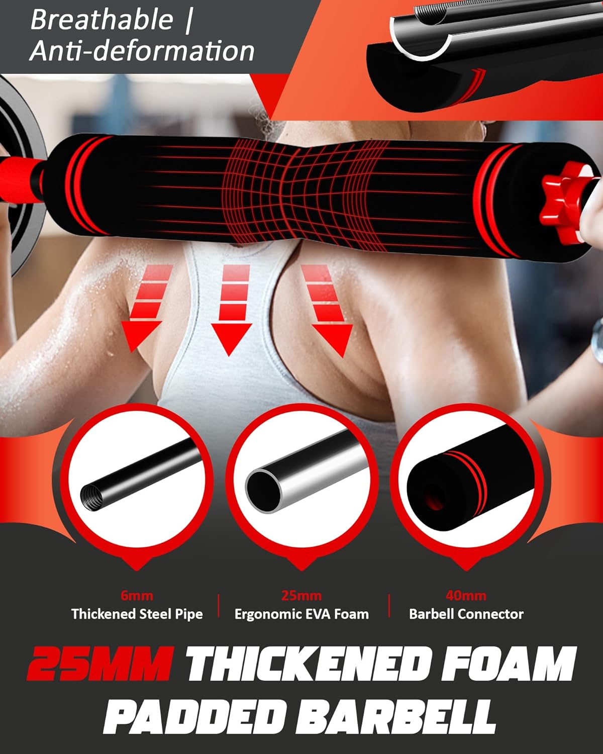 Ergonomic Design for Comfort – Non-slip, sweat-absorbent grips and a foam-padded bar offer maximum comfort. The ergonomic design reduces fatigue, enhancing your workout efficiency and making every exercise more enjoyable