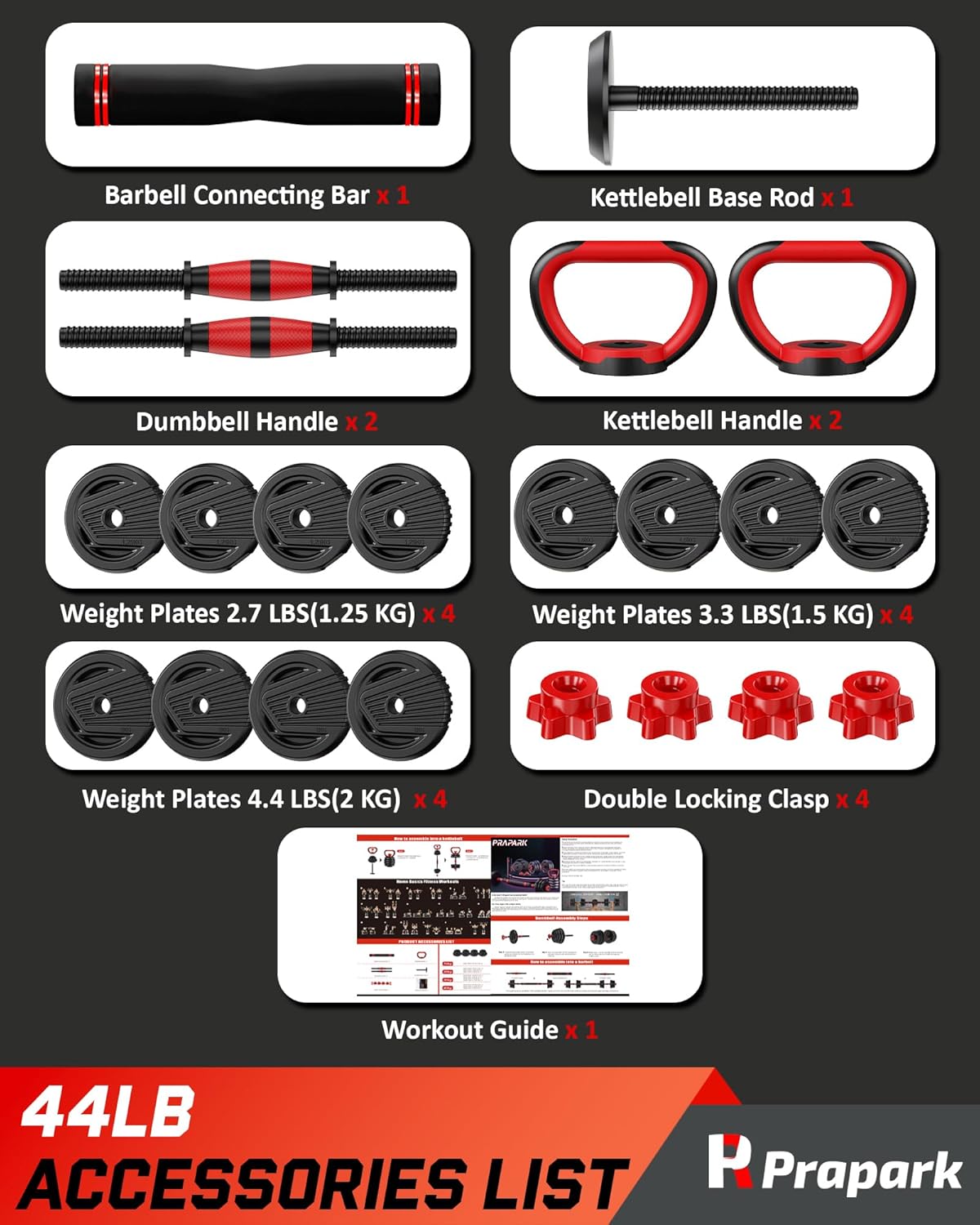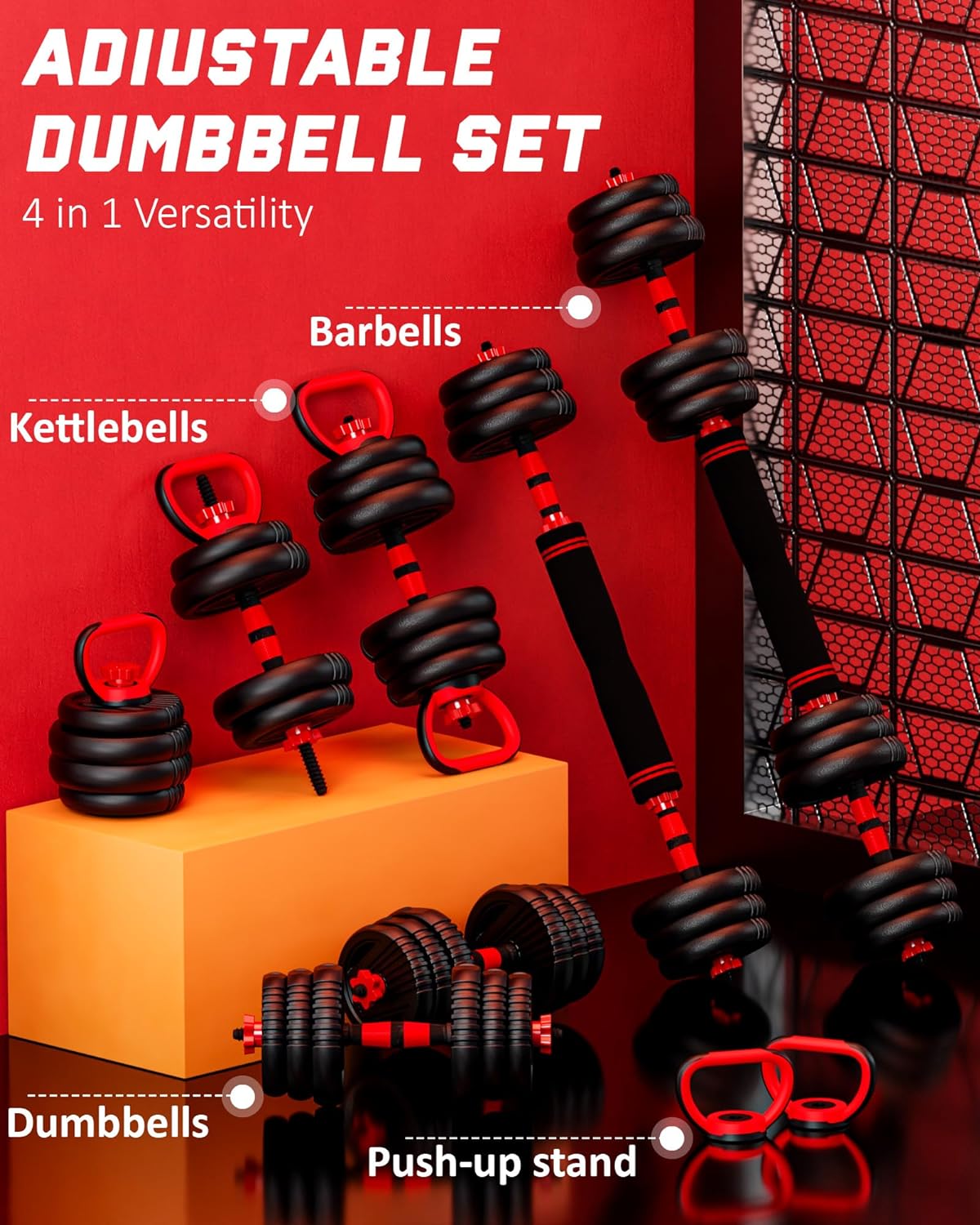 Versatile Fitness Solution – Transform your home gym with our 4-in-1 Adjustable Dumbbell Set. It easily converts into dumbbells, a barbell, kettlebells, and push-up stands, offering a full-body workout solution for all fitness levels
