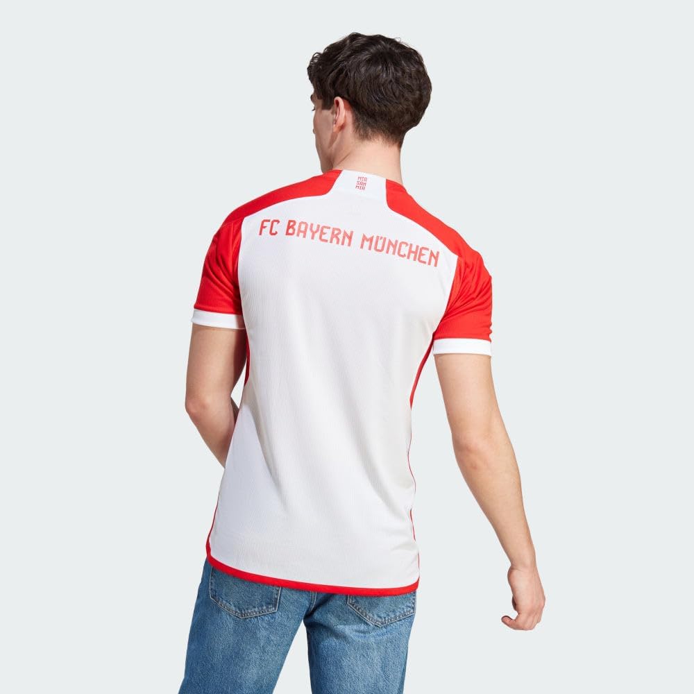 A modern reinterpretation of the legendary club’s first kit, the FC Bayern Home Authentic Jersey pays tribute to the great players of the past. The first full red and white kit for 30 years, it brings a nostalgic yet fresh twist to a team famed for its football consistency.Cut for a close fit, the jersey is crafted entirely from 100% recycled polyester double knit and finished with a premium ribbed crewneck. Behind the scenes, moisture-wicking AEROREADY fabric helps to keep you feeling comfortable whether you’re headed for the grandstands or the pitch. Flash your homegrown pride thanks to the embossed FC Bayern Munchen logo, ‘Mia San Mia’ signoff at the back and embroidered crest.
