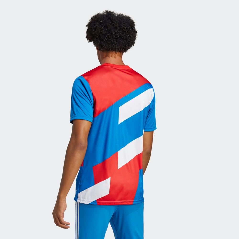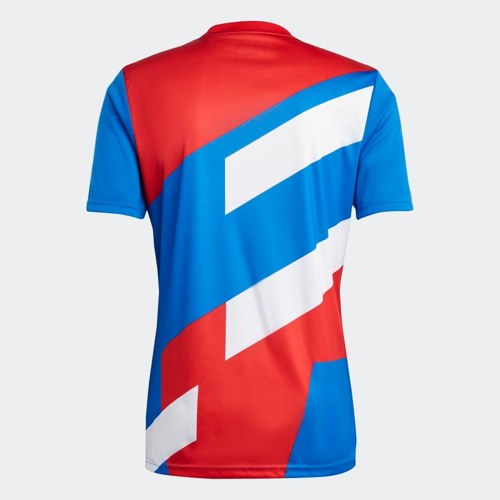 Red, white, blue and bold. In the early ’90s, FC Bayern’s superstars stood out on the training field in vibrant adidas Equipment-style blocks of color. This soccer jersey borrows its eye-catching look from that larger-than-life era. The shirt players wear before kickoff, it combines smooth fabric and moisture-absorbing AEROREADY for total confidence. Made with 100% recycled materials, this product represents just one of our solutions to help end plastic waste.