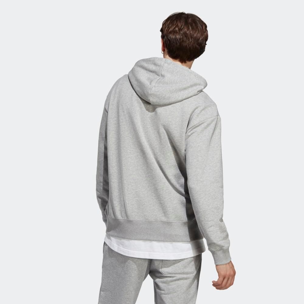 This adidas hoodie for men is made from a blend of cotton and polyester French terry fabric for silky softness. Its loose fit makes it easy to layer over everything from workout tank tops to slouchy sweat pants. A kangaroo pocket and drawcord hood keep you warm and cozy.