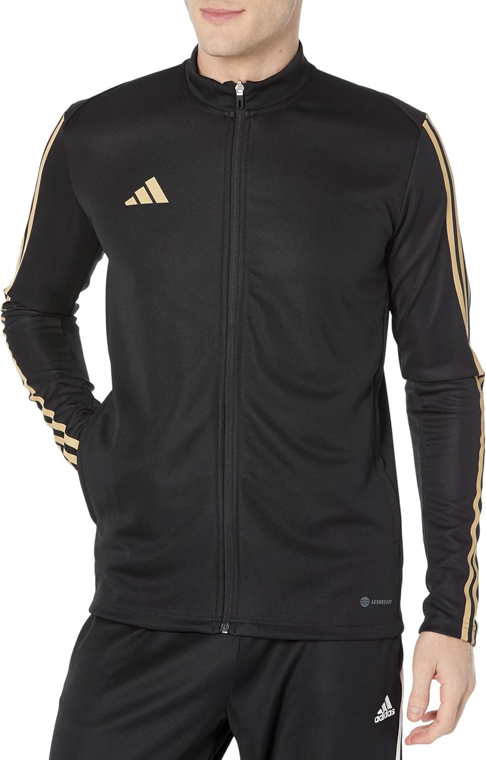 Soccer style is for the field and beyond. This men’s adidas track jacket fits slim, so it won’t get in your way. AEROREADY manages moisture when you heat up on the training ground. Secure zip pockets hold whatever you need when practice is over.