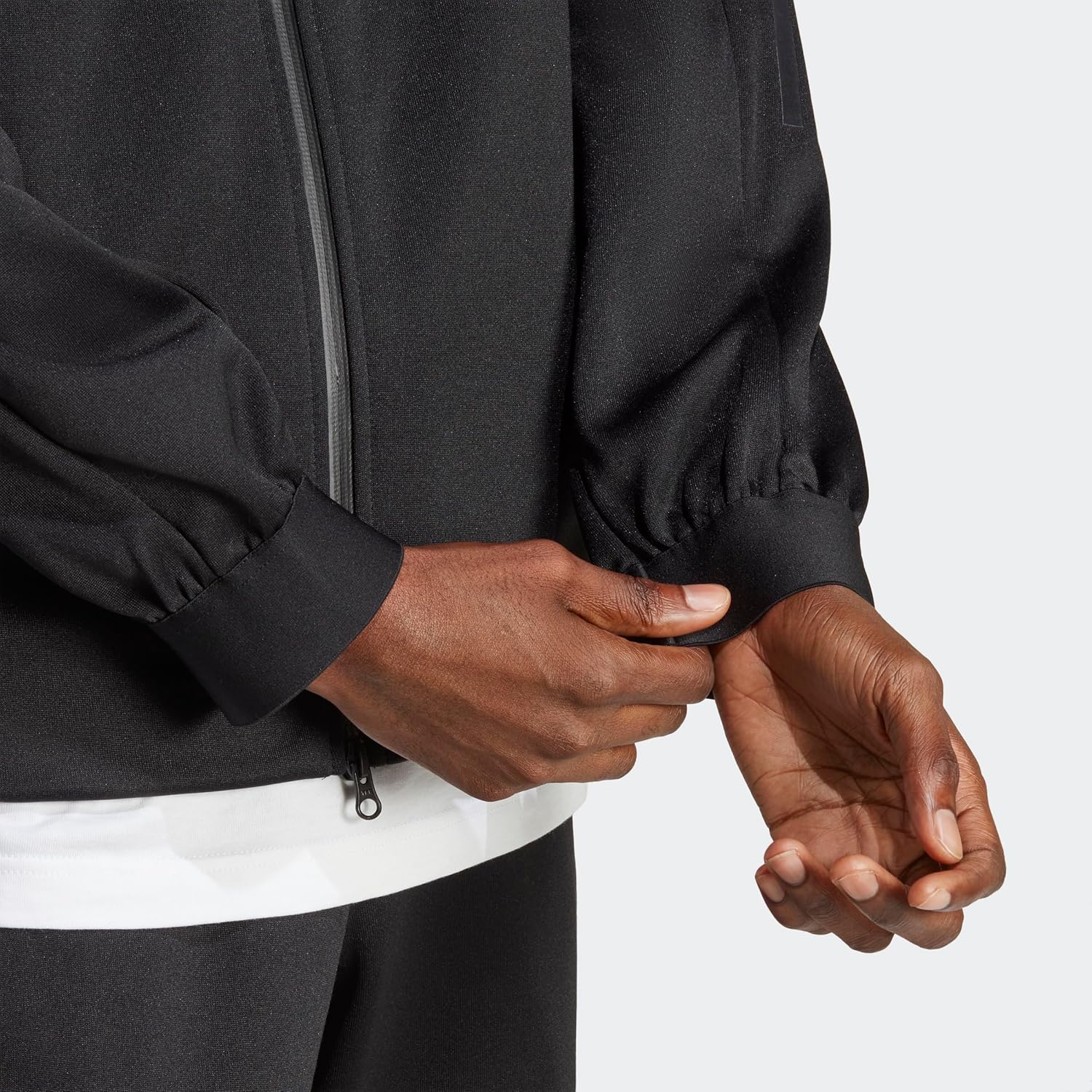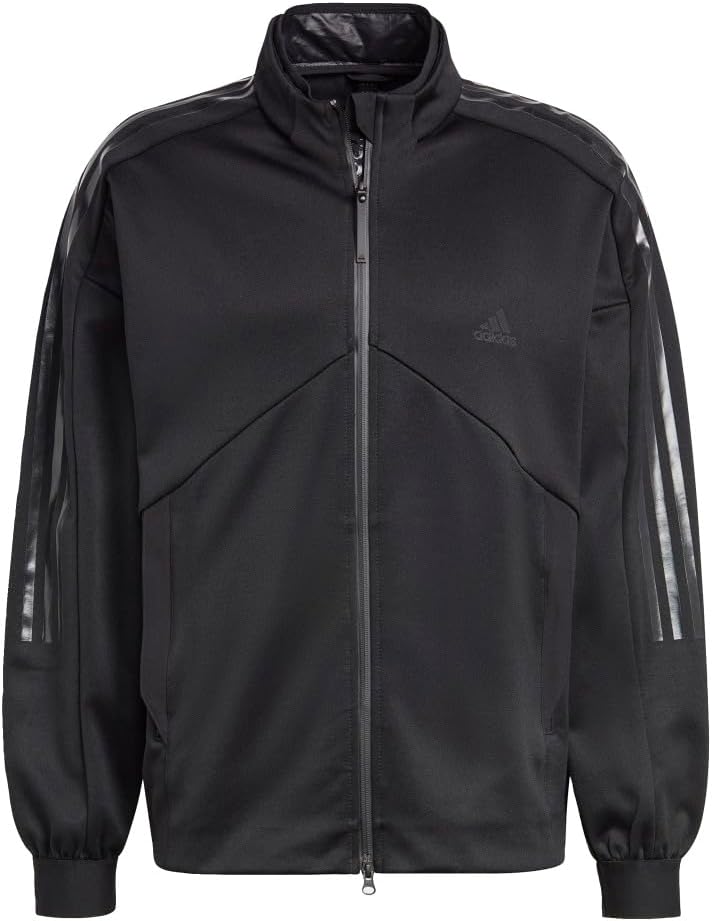 Soccer style is for the field and beyond. This men’s adidas track jacket has a classic look with a full zip and a stand-up collar. Front zip pockets hold your wallet and phone and keep your hands warm.