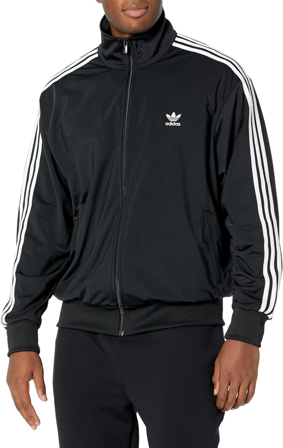 A fresh look that comes straight from the archive. This men’s adidas track jacket has a full zip with a stand-up collar for classic style and adjustable coverage. Zip pockets can hold all your small essentials.