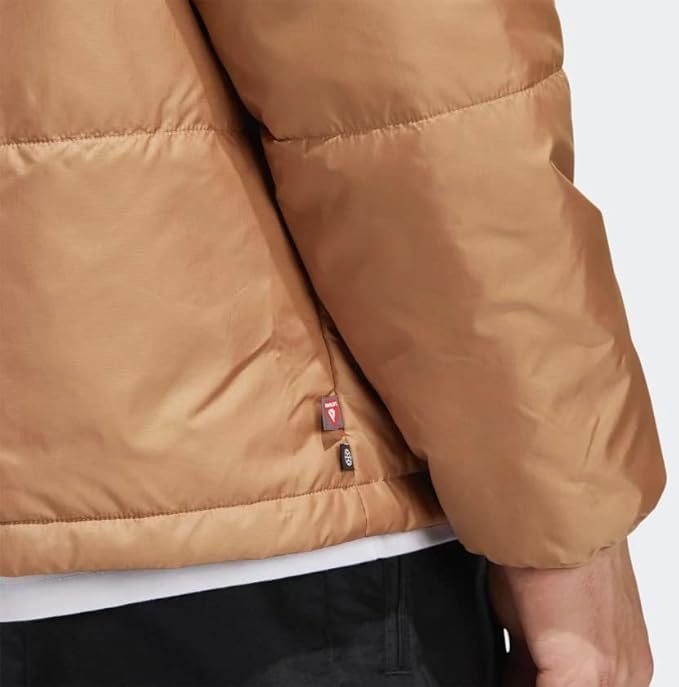 Relaxed fit Full two-way zip with fold-down collar Shell: 100% recycled polyester ripstop Lining: 100% recycled polyester plain weave PrimaLoft insulation Side pockets Imported Product color: Cardboard / Black