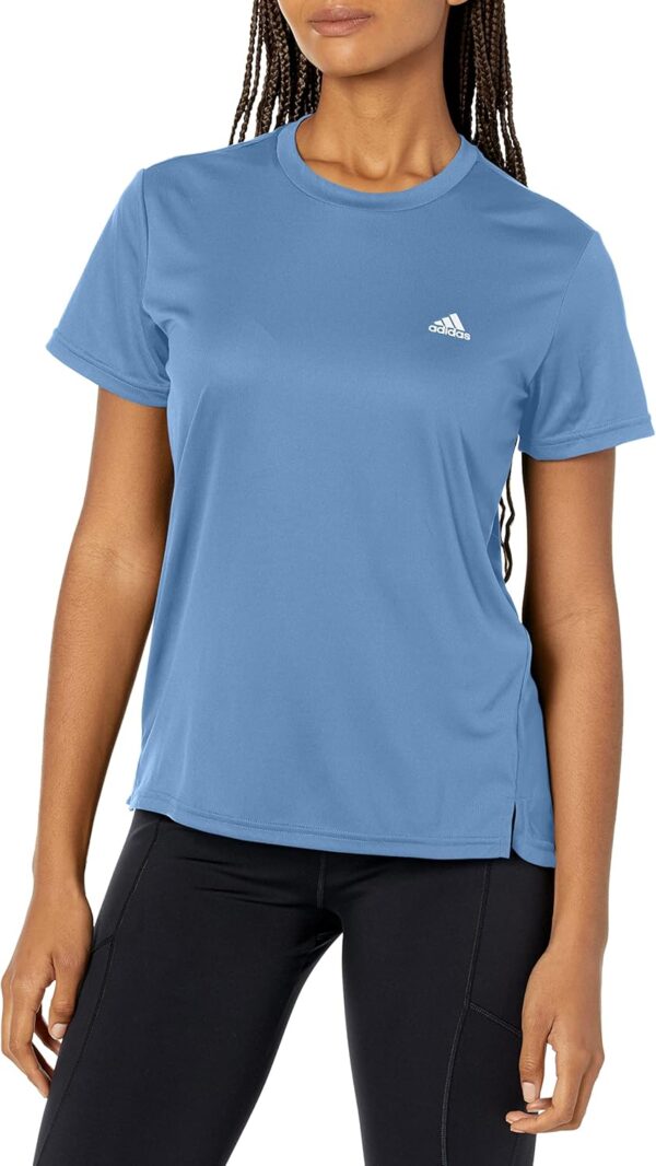 Be ready for wherever your day takes you. This women’s adidas t-shirt is made with moisture-absorbing AEROREADY to help you stay dry and comfortable. A curved hem provides extra coverage in the back.