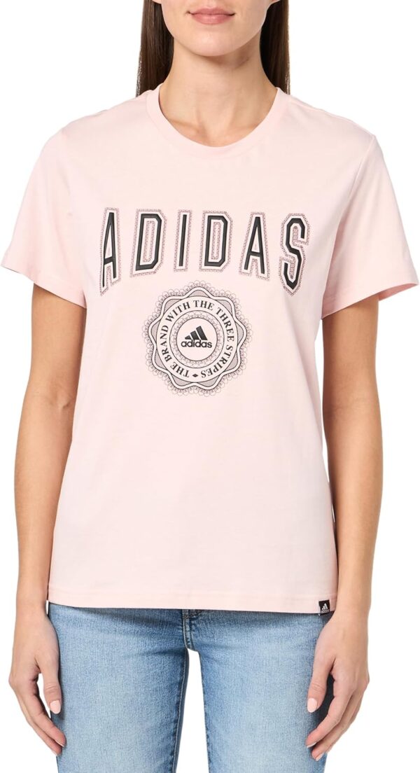 The collegiate-style lettering stands out everywhere you go in this women’s t-shirt. The adidas name keeps it sporty. The classic crewneck silhouette takes you effortlessly through the seasons, while the all-cotton fabric feels soft on your skin. Dress it up with a jacket and loafers or down-shift with jeans and your favorite sneakers.