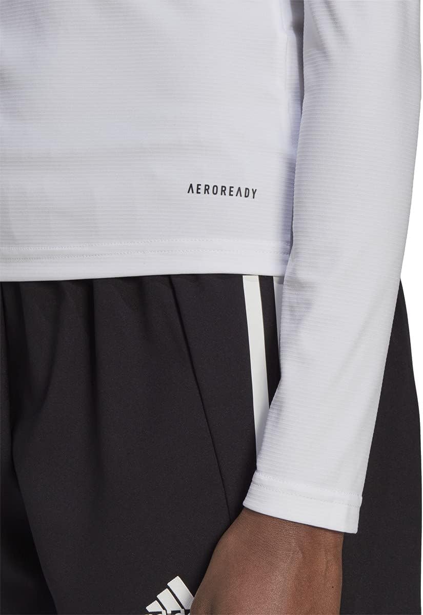 Keep your look sleek in this women’s adidas long sleeve t-shirt. It features moisture-absorbing AEROREADY so you stay dry as you roll up your training miles. Built-in stretch helps you move without distraction.