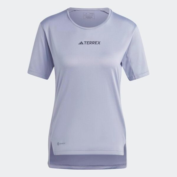 Run. Hike. Explore. Your options are wide open with this adidas t-shirt for women. AEROREADY manages moisture to keep you feeling dry, comfortable and focused through extended efforts. Offset shoulder seams reduce chafing under a backpack, and a slightly longer back hem keeps you covered as you bend, reach and move. Reflective details shine in low-light conditions.