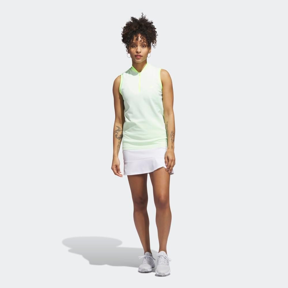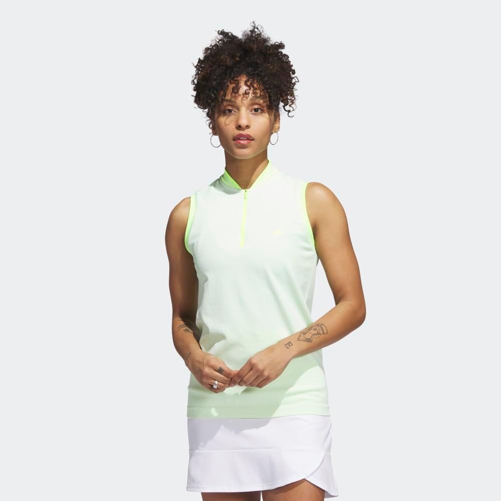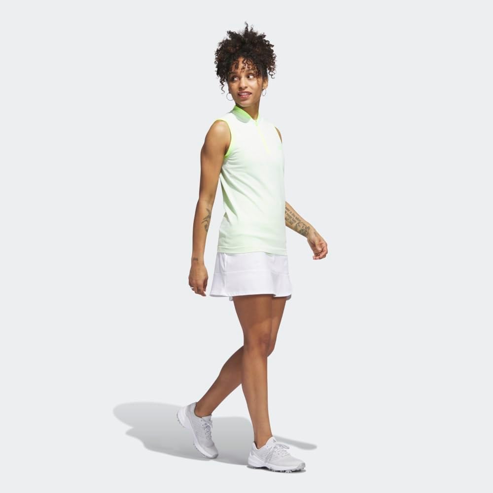 Stay cool on the course in this women’s golf sleeveless polo shirt. It’s made of stretchy and breathable adidas PRIMEKNIT that lets you move freely for an uninterrupted golf swing. The two-tone design gives it a lively look. A minimum of 70% of this product is a blend of recycled and renewable materials.