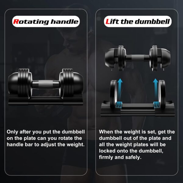 Unique Dial System- One-handed operation design, convenient for fast changing dumbbells’ weight during training. Just use a single hand to rotate the handle bar, and adjust to desirable weights when you are training