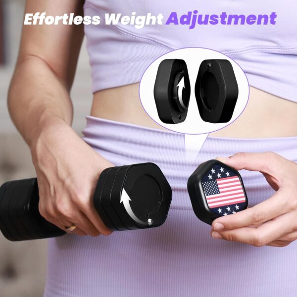 Specially Designed for Women: Zempox adjustable dumbbell set is meticulously crafted, available in black and purple, with a 4.4-inch TPU soft rubber handle that provides a comfortable grip during training. They come in 4 kinds of weight options, allowing personalized choices for users
