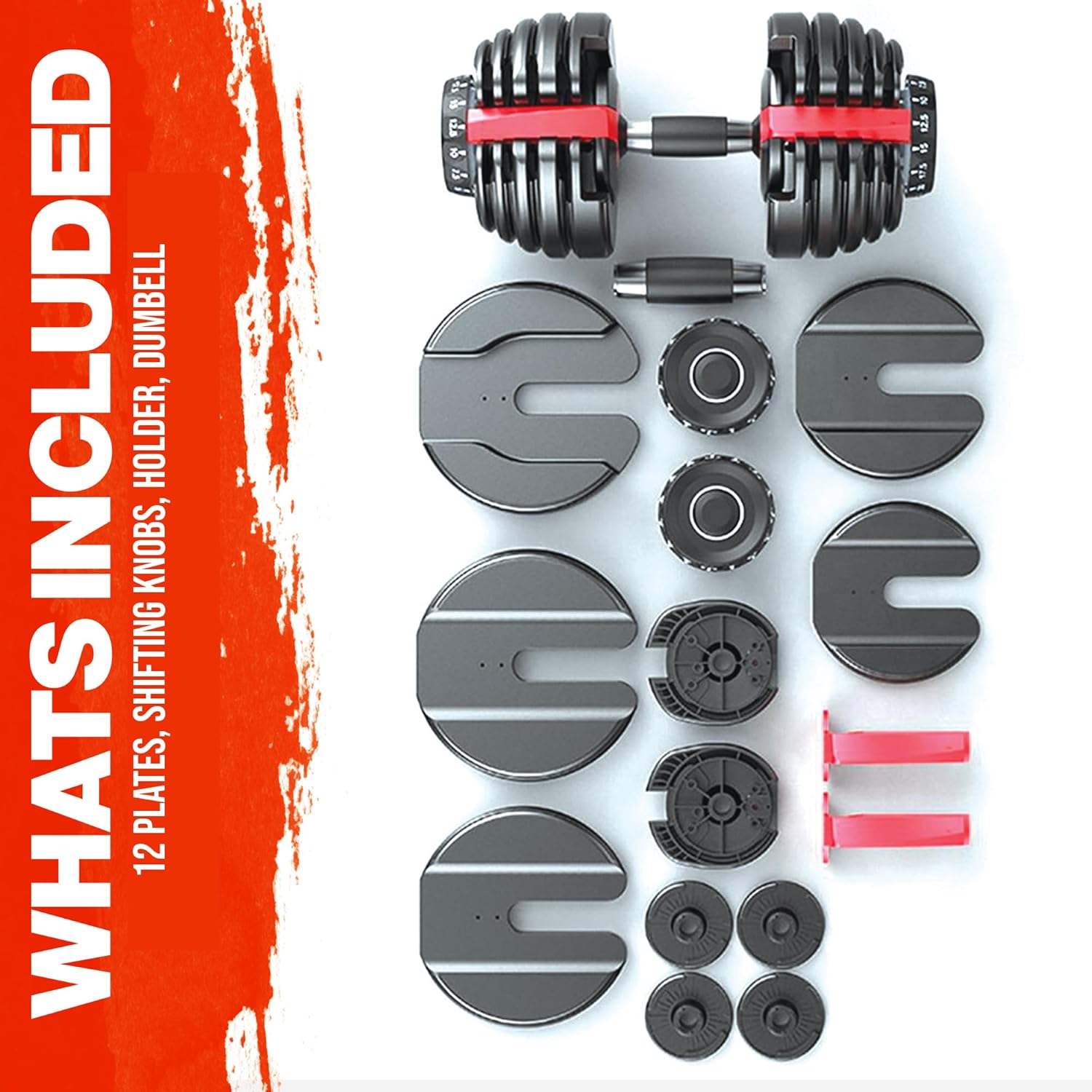 Versatile Dumbbell Set: Elevate your home workouts with our 5-52.5 lbs (2.5-24 kg) adjustable dumbbell, suitable for both men and women. Enjoy a comprehensive fitness experience with a wide range of exercise options.