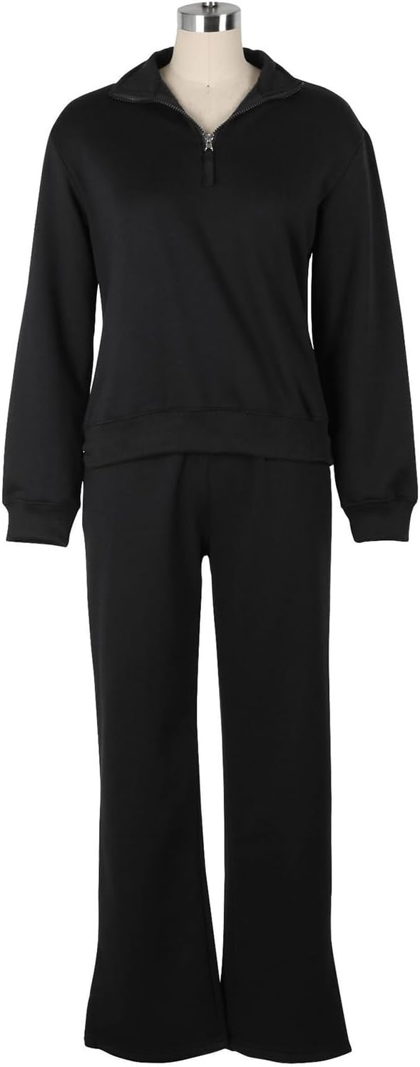 Women’s 2 Piece Outfits Half Zip Sweatshirts Wide Leg Sweatpant Sweatsuit Set