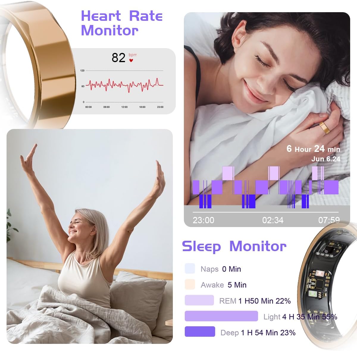 【Get a good night’s sleep】 JCRing’s design is lighter and comfortable compared to traditional smart watches. It is made of skin -friendly high -strength titanium material, which is almost no sense of burden, which is very suitable for long -term wear. What’s more worth mentioning is that the smart ring can provide you with detailed sleep analysis reports, including deep sleep, light sleep, eye movement sleep, etc. It help you understand your sleep status, improving sleep quality.
