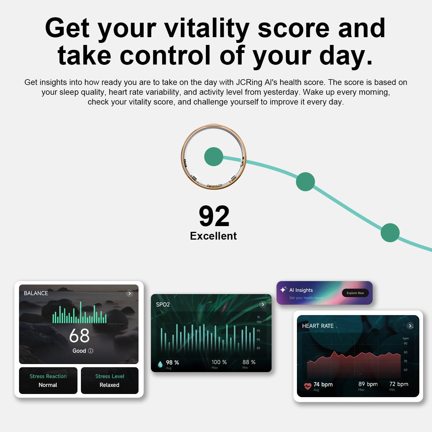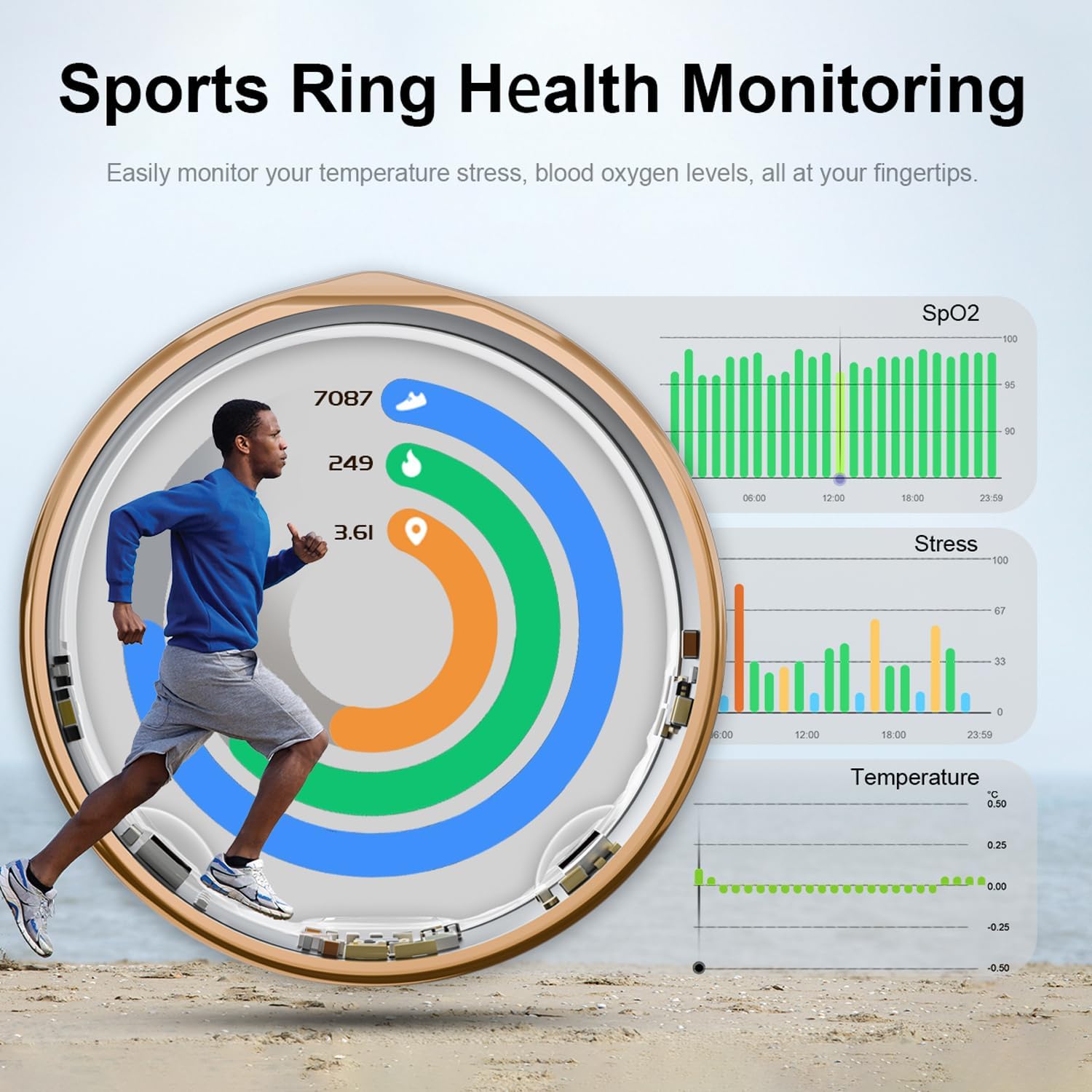 AI Smart Ring JCRing Gen4 Fitness&Sleep Tracking Wearable, Accurate Monitoring of Pedometer, Heart, Temperature, Titanium Ring with Charging Case, APP for iOS & Android(Gold Size9)