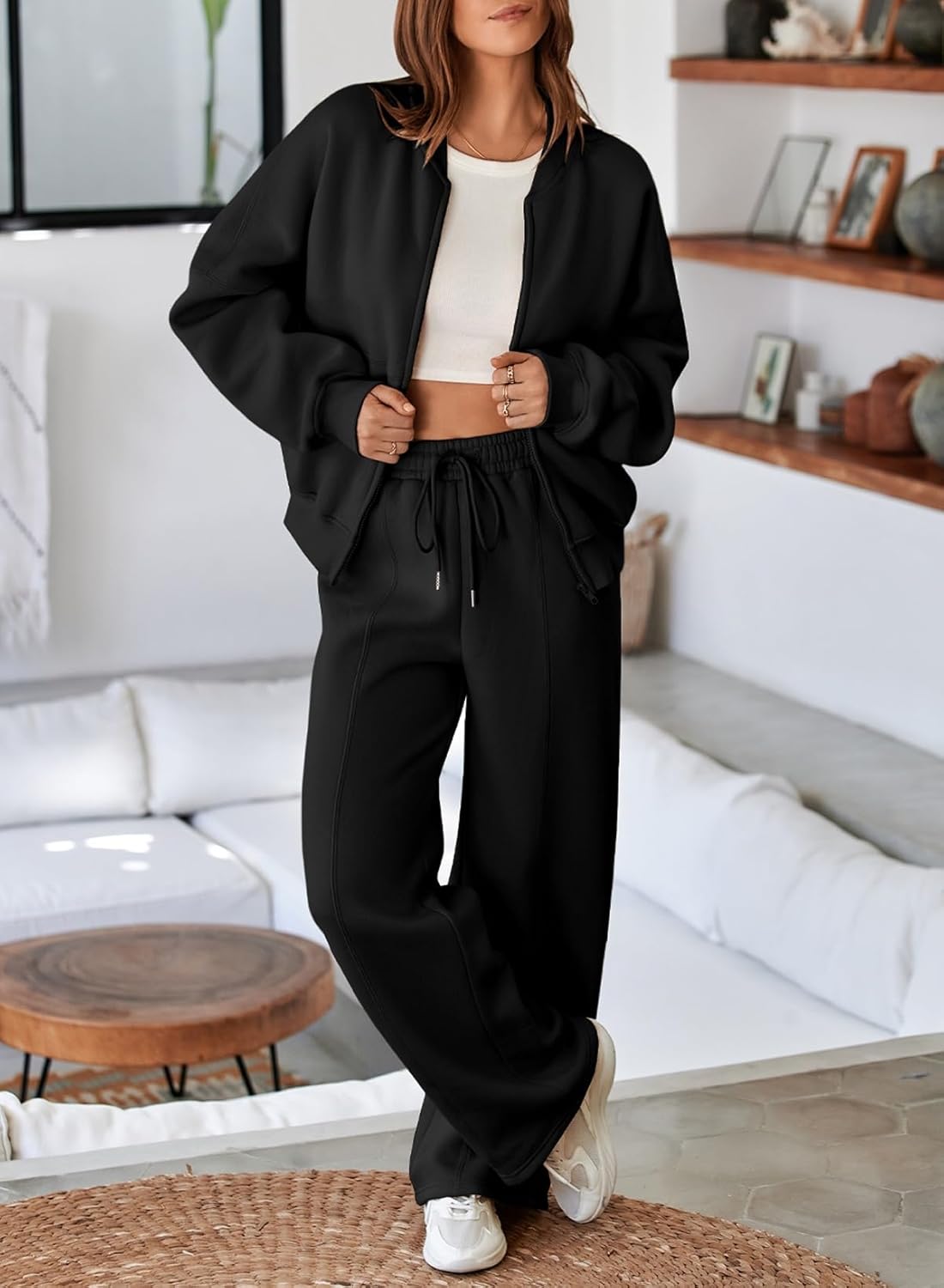 A versatile women’s 2 piece sweatsuit that you can wear separately, paired with your jeans or jacket for a very stylish look.