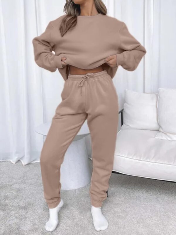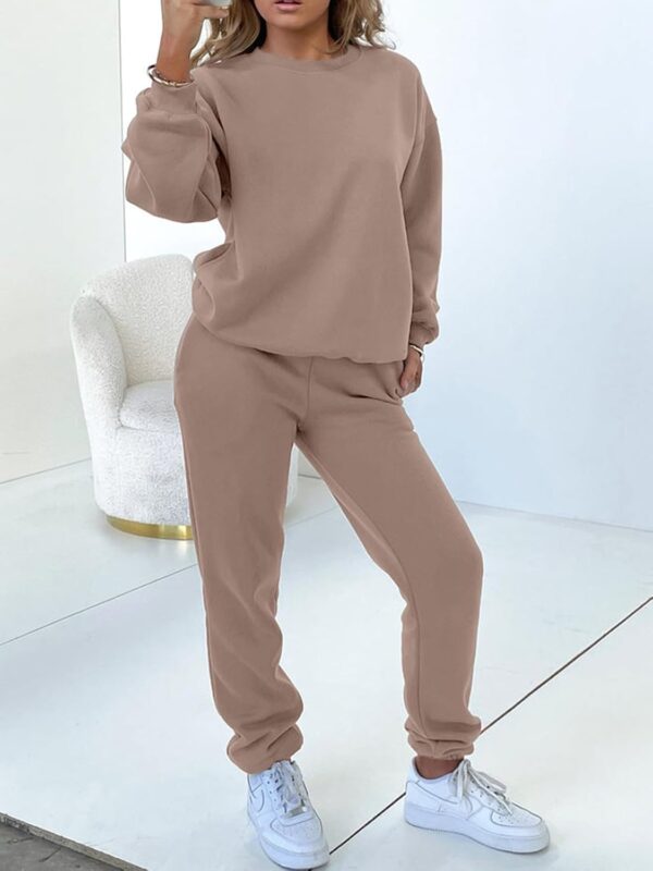 Alunzoem Lounge Sets for Women 2 Piece Fleece Long Sleeve Pullover Top High Waisted Sweat Pants with Pocket