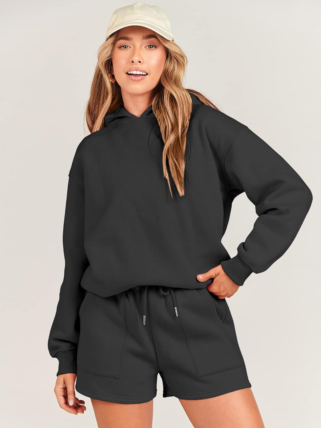ANRABESS Women 2 Piece Outfit Oversized Hoodie Sweatshirt Shorts Lounge Sweat Set Sweatsuit Tracksuit 2024 Trendy Y2K Clothes