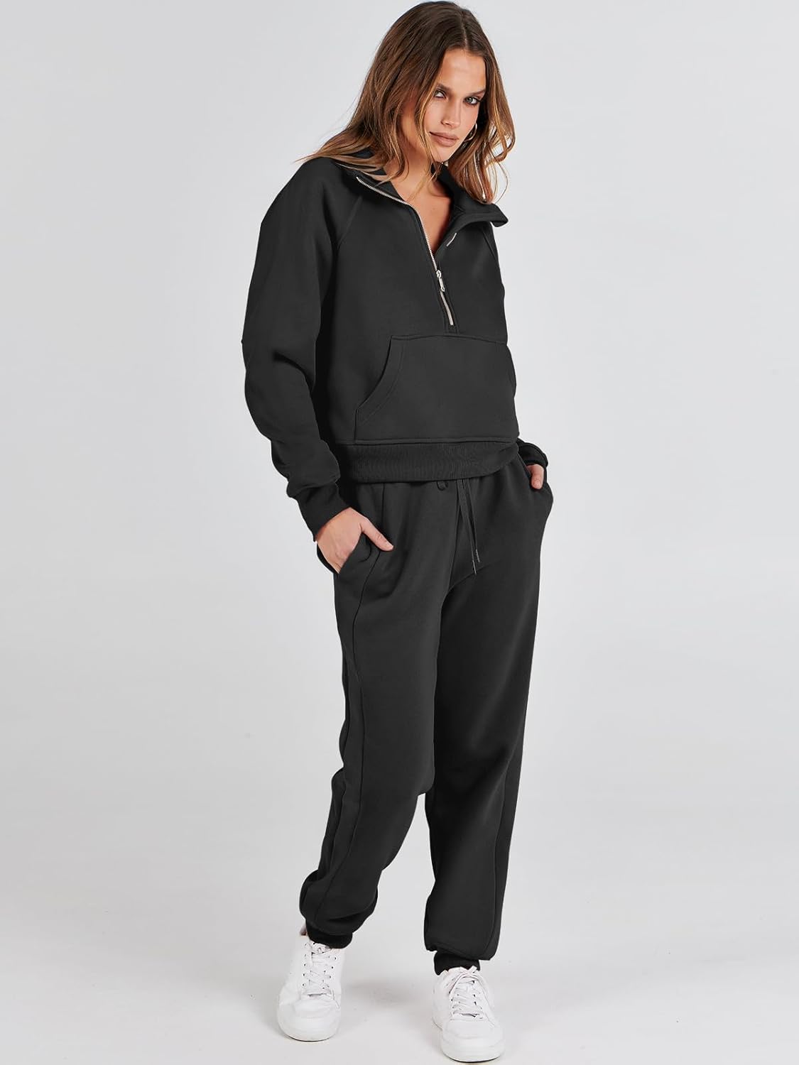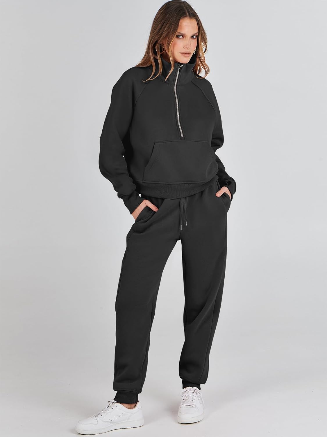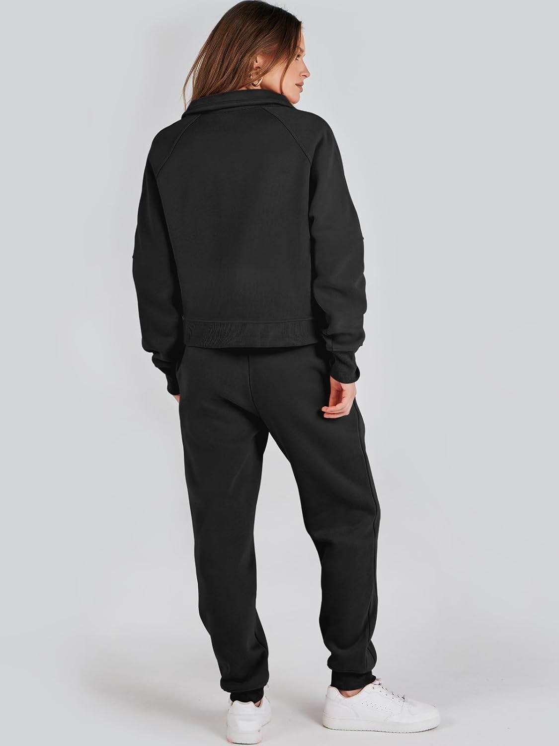 ANRABESS Women’s Two Piece Half Zip Crop Sweatsuit