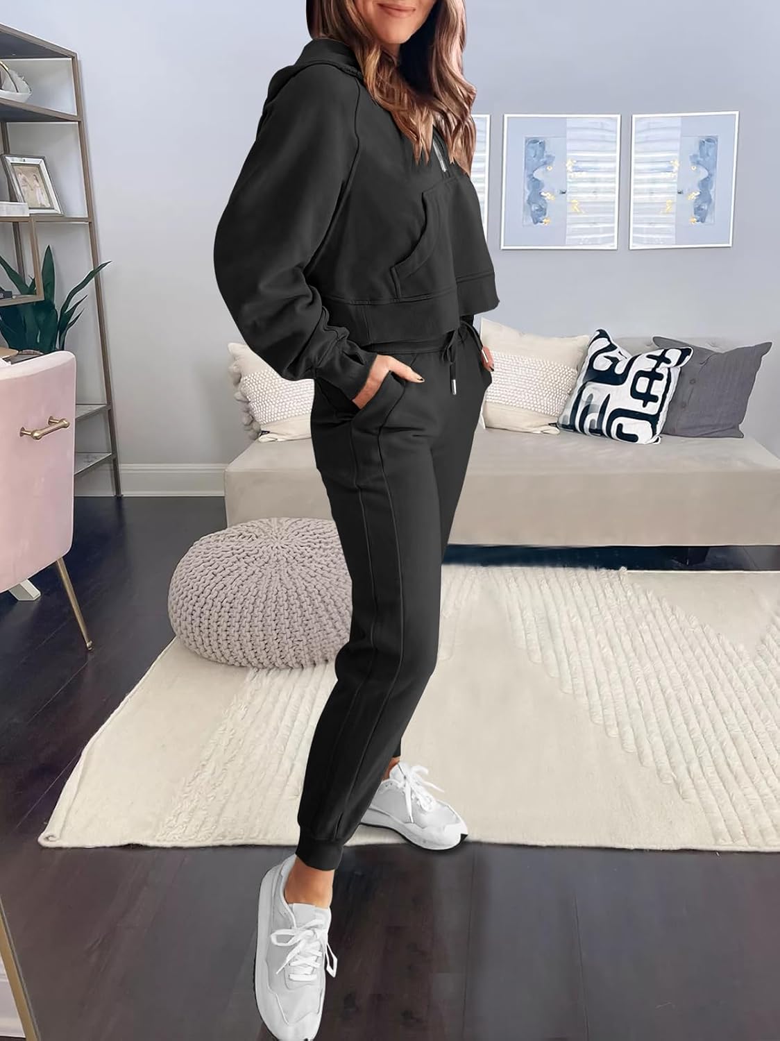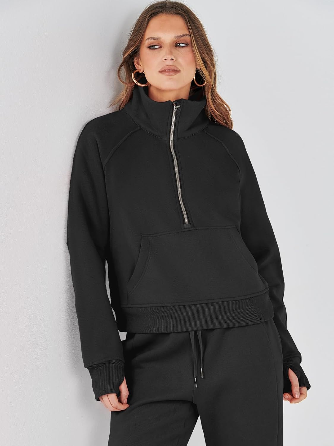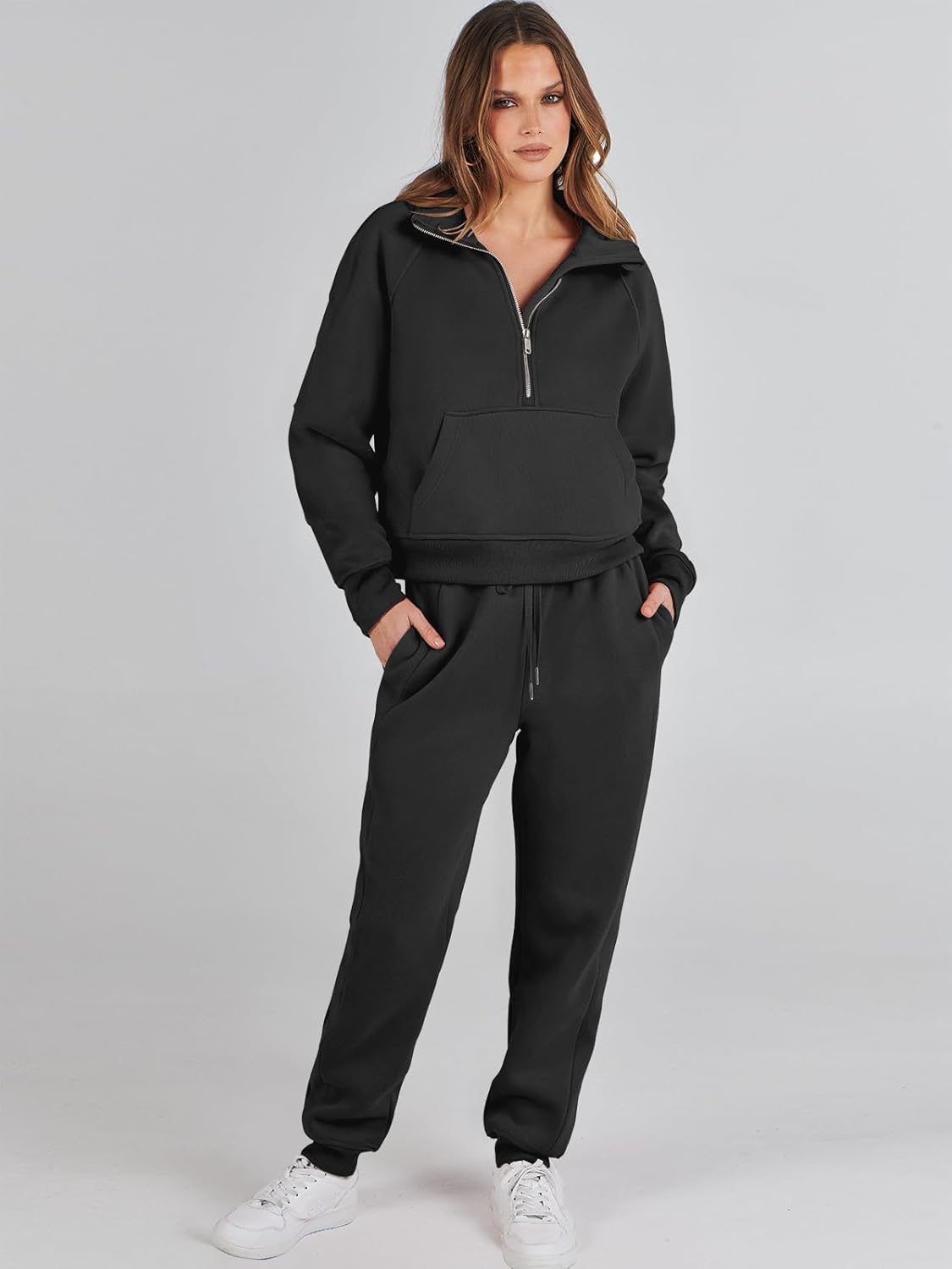 ANRABESS Women’s Two Piece Half Zip Crop Sweatsuit