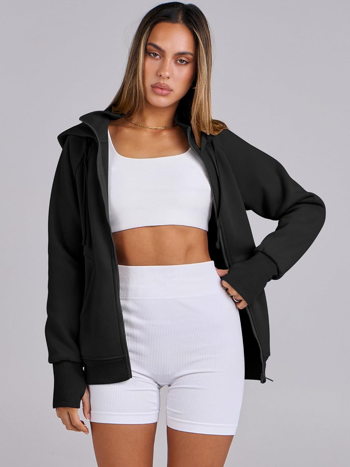 Customers like the color, material quality, and size of the sweatshirt. They mention it looks good, is thick, and runs true to size. Some appreciate the holes and collar design that keep them extra cozy.