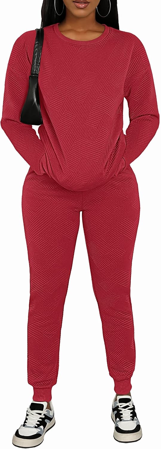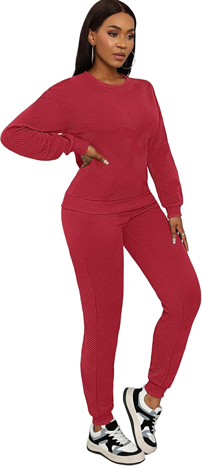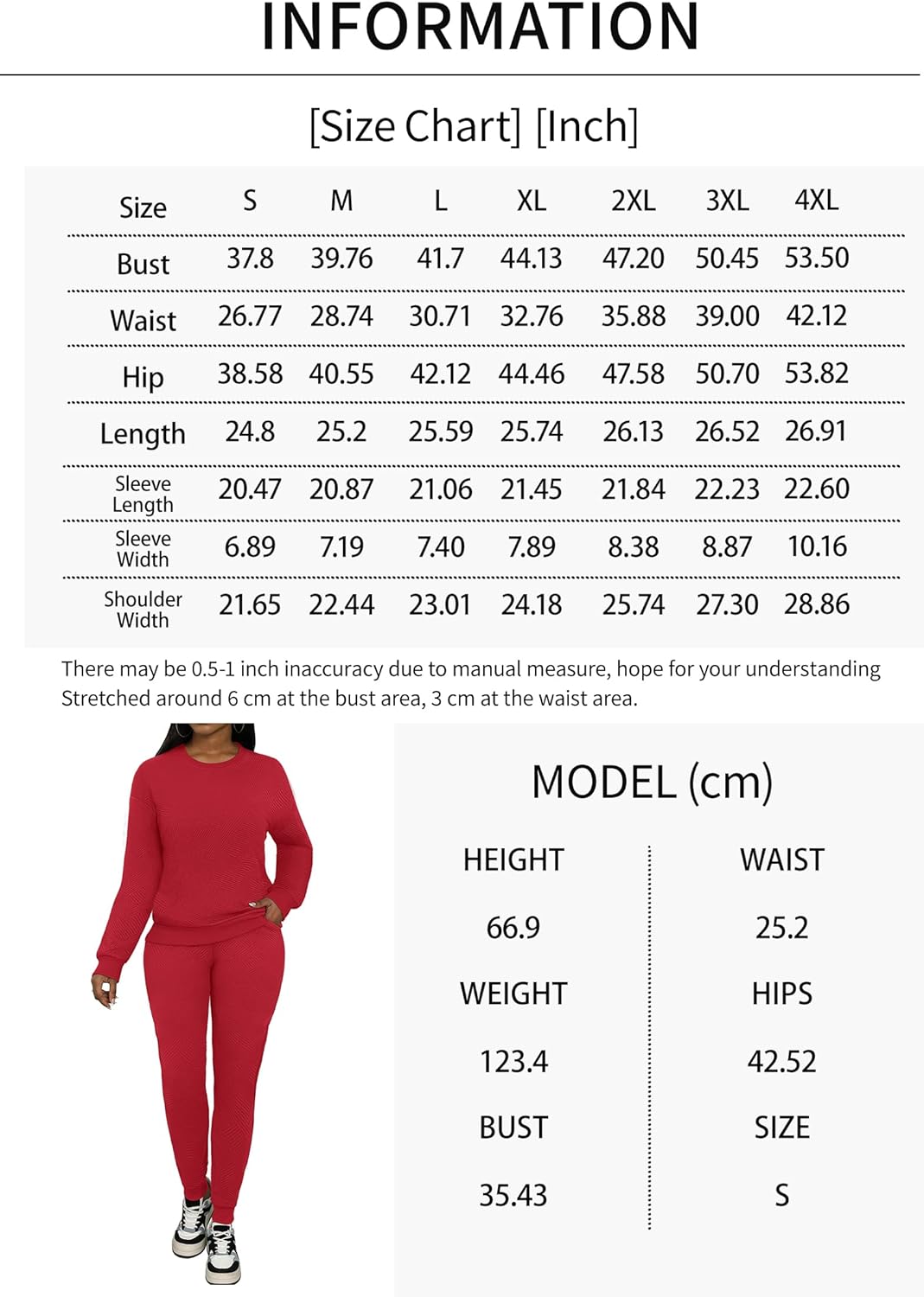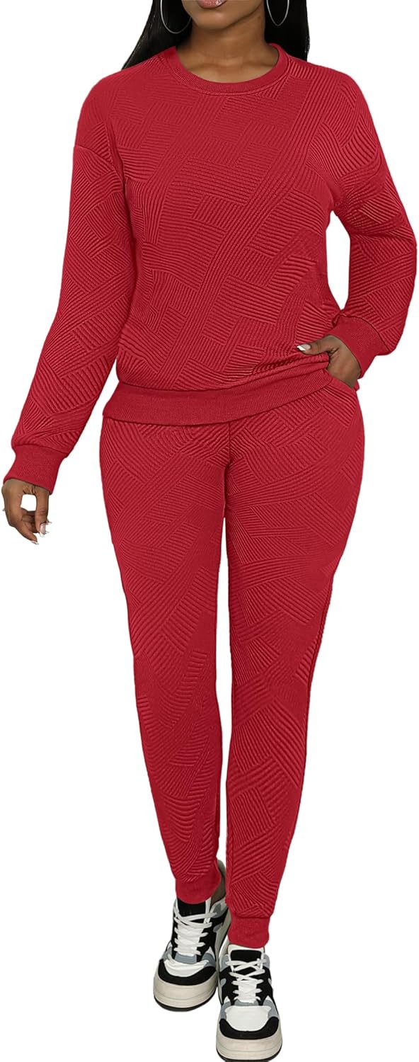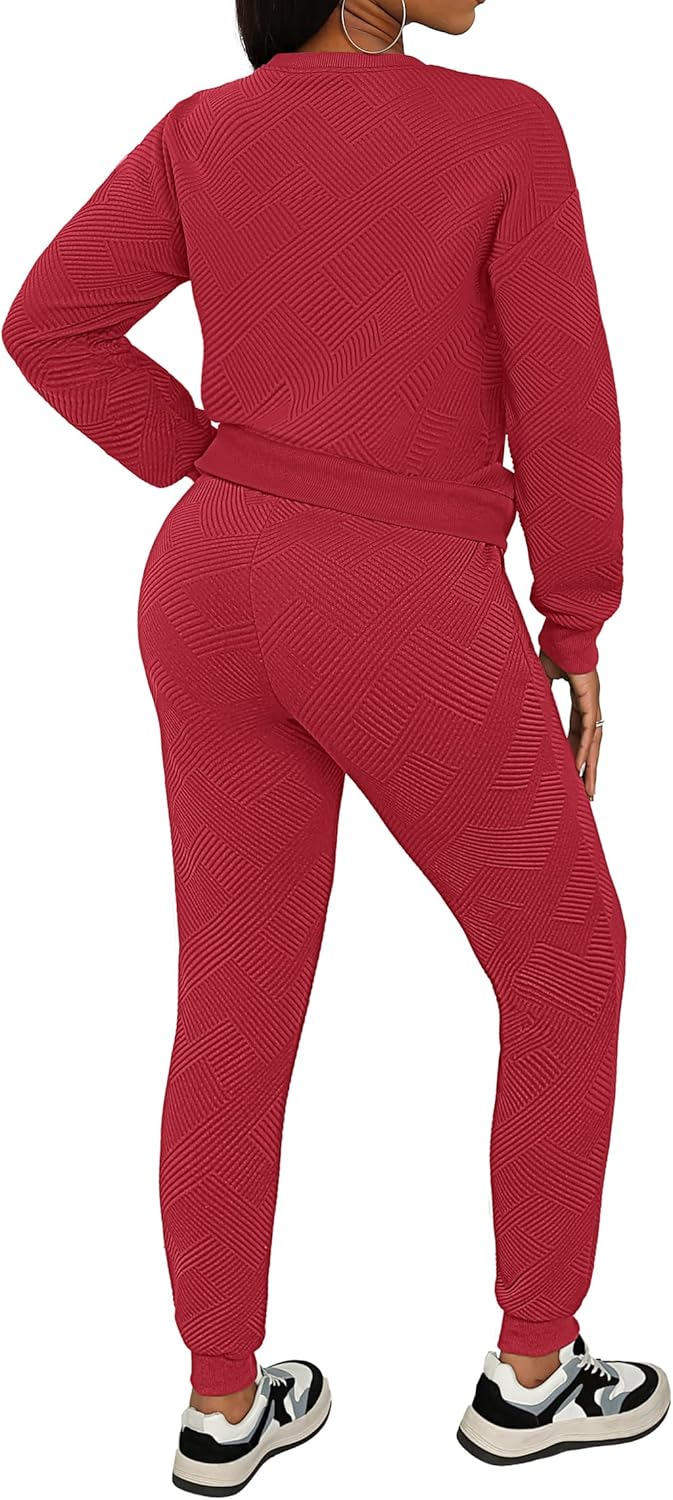 Womens casual crew neck long sleeve sweatshirt and drawstring sweatpants sets,drawstring joggers side-seam pockets for small essentials.