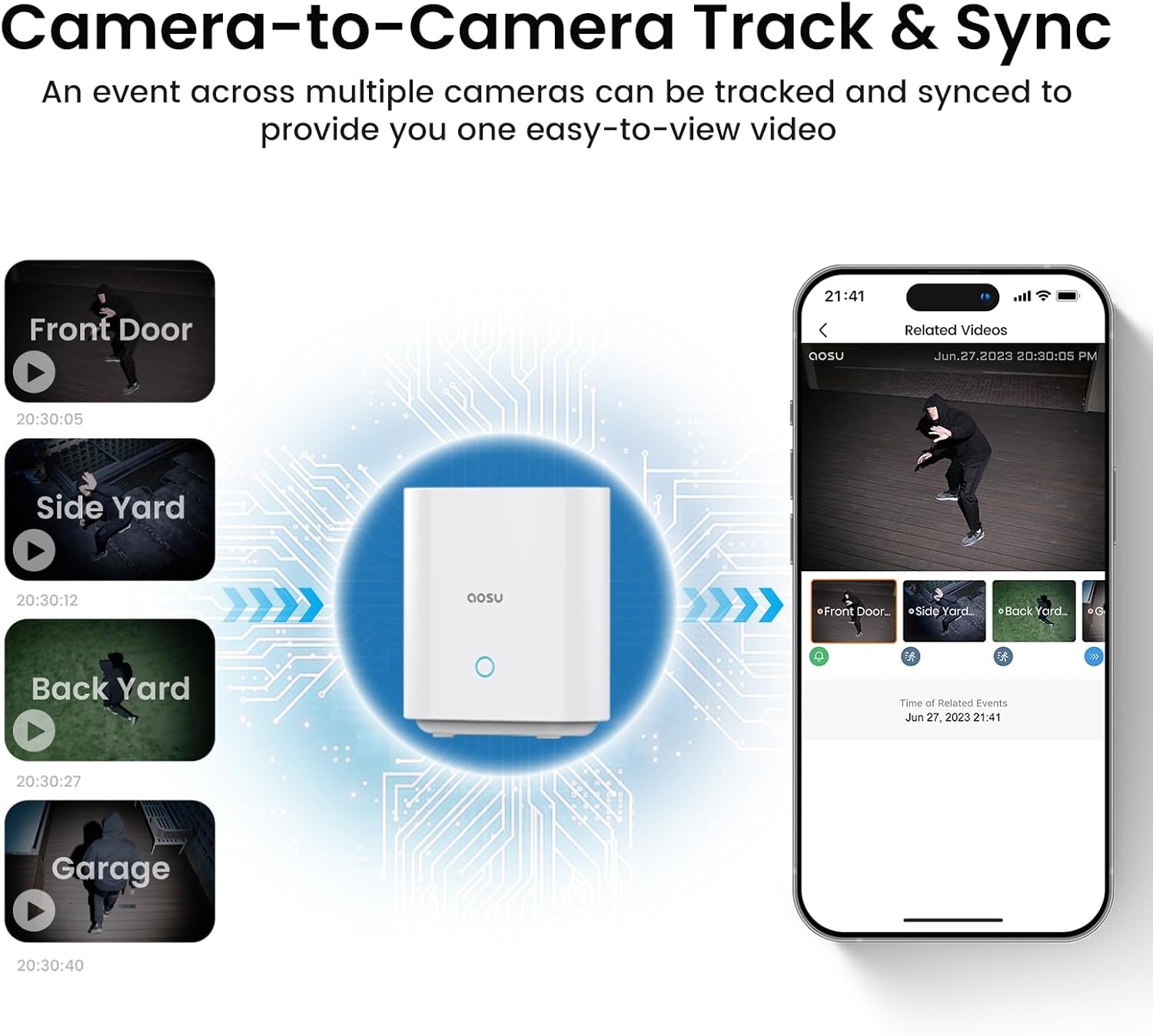 【Enhance Home Security】 Effortlessly monitor up to 4 live streams on your smartphone, anytime and anywhere, with AOSU’s SolarCam Pro System. Benefit from AI-powered cross-camera tracking for intuitive and seamless playback.