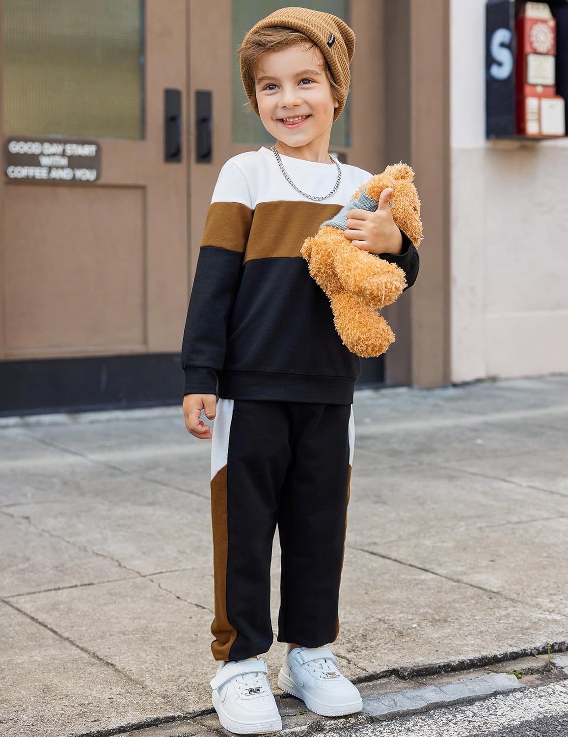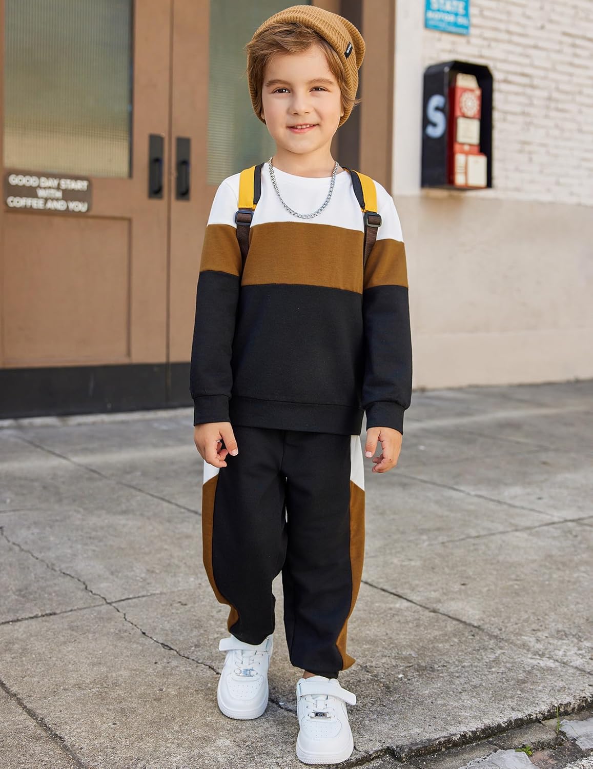 Boy Color Block Pullover & Contrast Side Seam Sweatpants