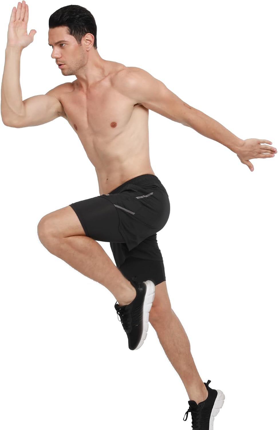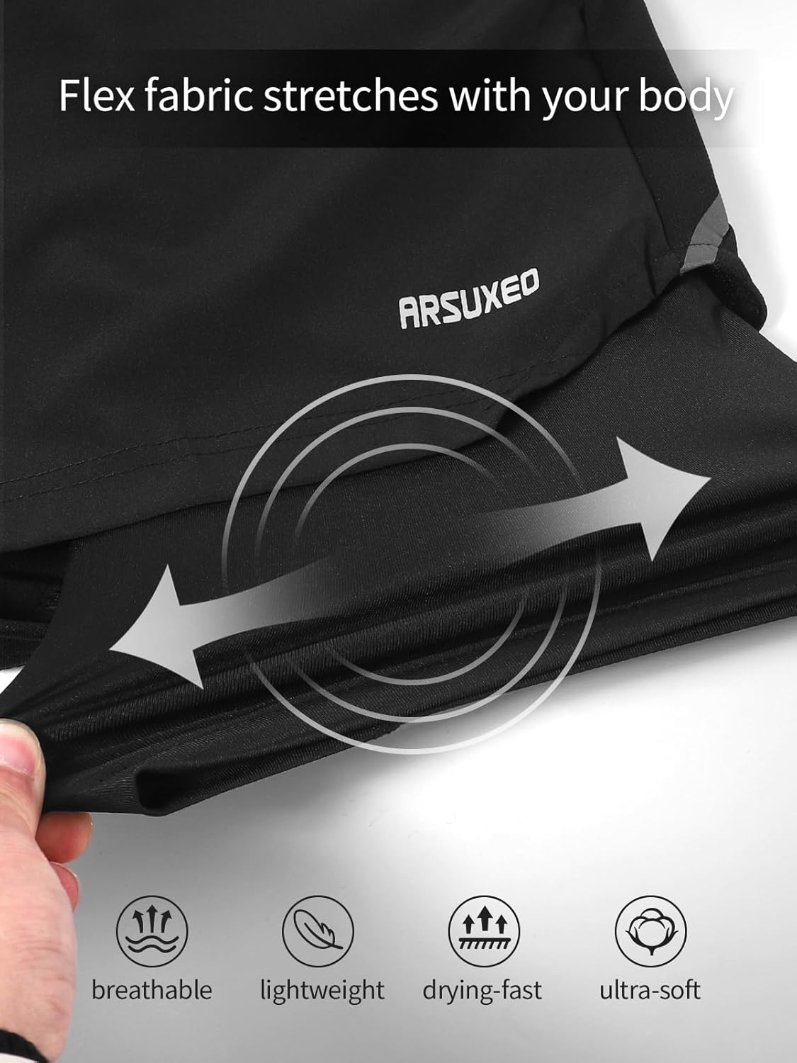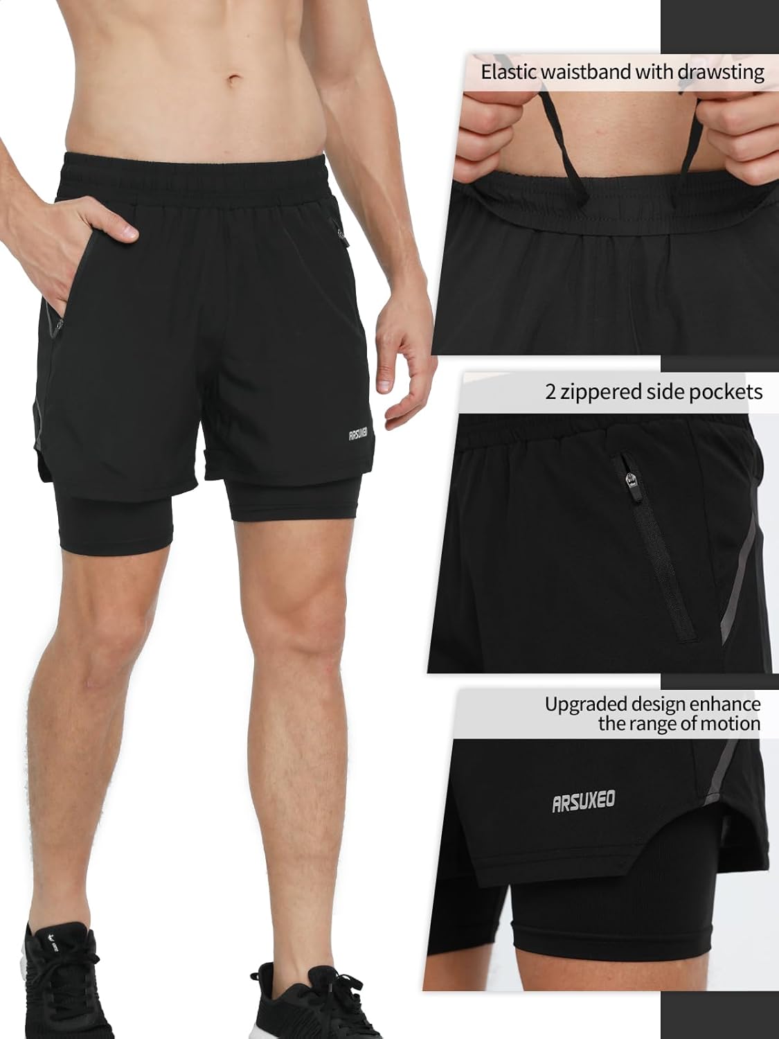 ARSUXEO Men’s 2 in 1 Active Running Shorts with 2 Zipper Pockets