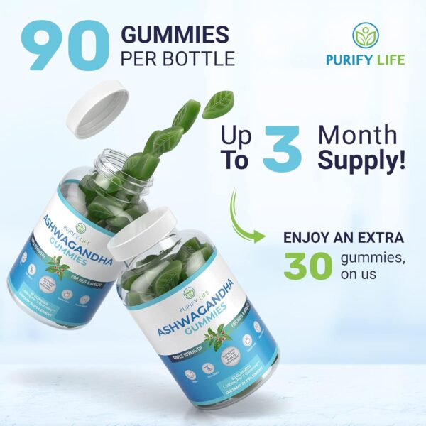[90 Stress Gummies – 3 Month Supply]: There are 90 gummies in each bottle of Purify Life Ashwaganda Gummies up to a 3 MONTH SUPPLY. Enjoy 30 extra gummies, on us!