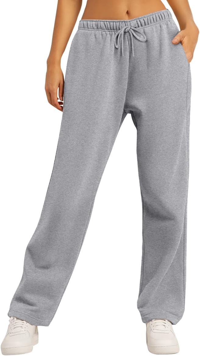 AUTOMET Women’s Fleece Lined Sweatpants Baggy Wide Straight Leg Pants