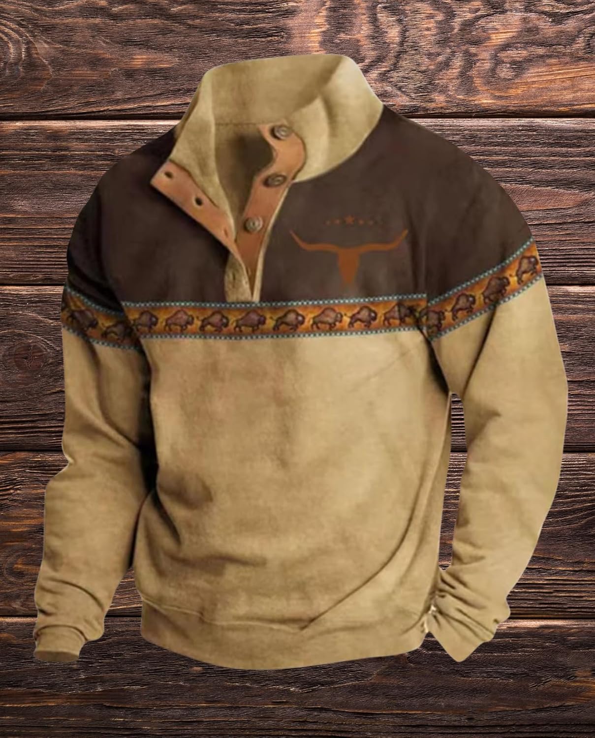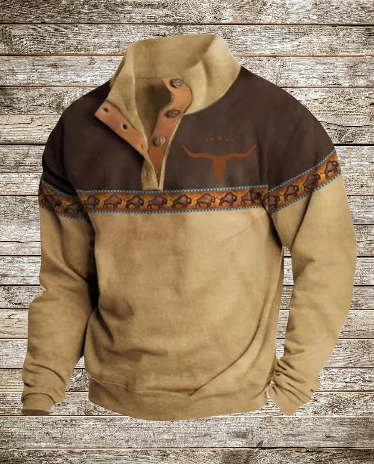 Aztec Cowboy Mens Pullover 2024 Western Vintage Graphic Hoodies for Men Casual Long Sleeve Half Zip with Pocket
