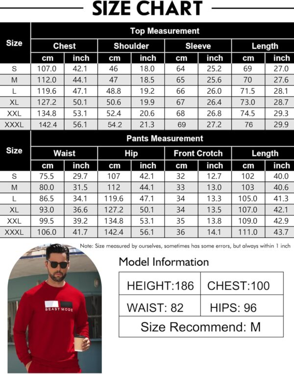 Men’s Sportswear Suits Warm Up Jogging Outfits Size Chart