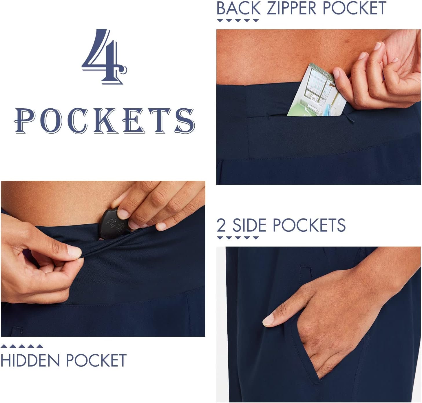 3.Side Pockets & internal waistband Pocket & back zip Pocket could stash the small items