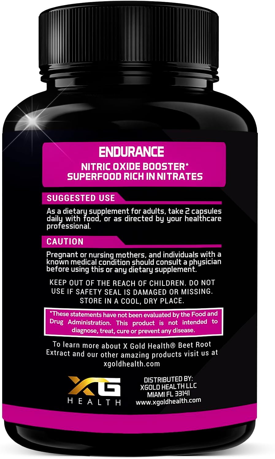 Are you one of the millions of people struggling with feelings of exhaustion and sluggishness? Take a step toward breaking through with increased energy and stamina with ultra-potent Beet Root Extract from X Gold Health! Our highly concentrated beet root extract 20:1 (20x Concentrated Extract Beet Root Capsules) with powerhouse nitrates revs up your body’s natural nitric oxide levels, which has been shown to improve oxygen efficiency and endurance, among other benefits. A longtime favorite supplement of gym-goers and endurance athletes such as runners, cyclists, and swimmers, beet root extract has the power to help you get in the zone quicker and stay in it longer for sustained peak performance while also speeding up recovery so you can get right back at it again.