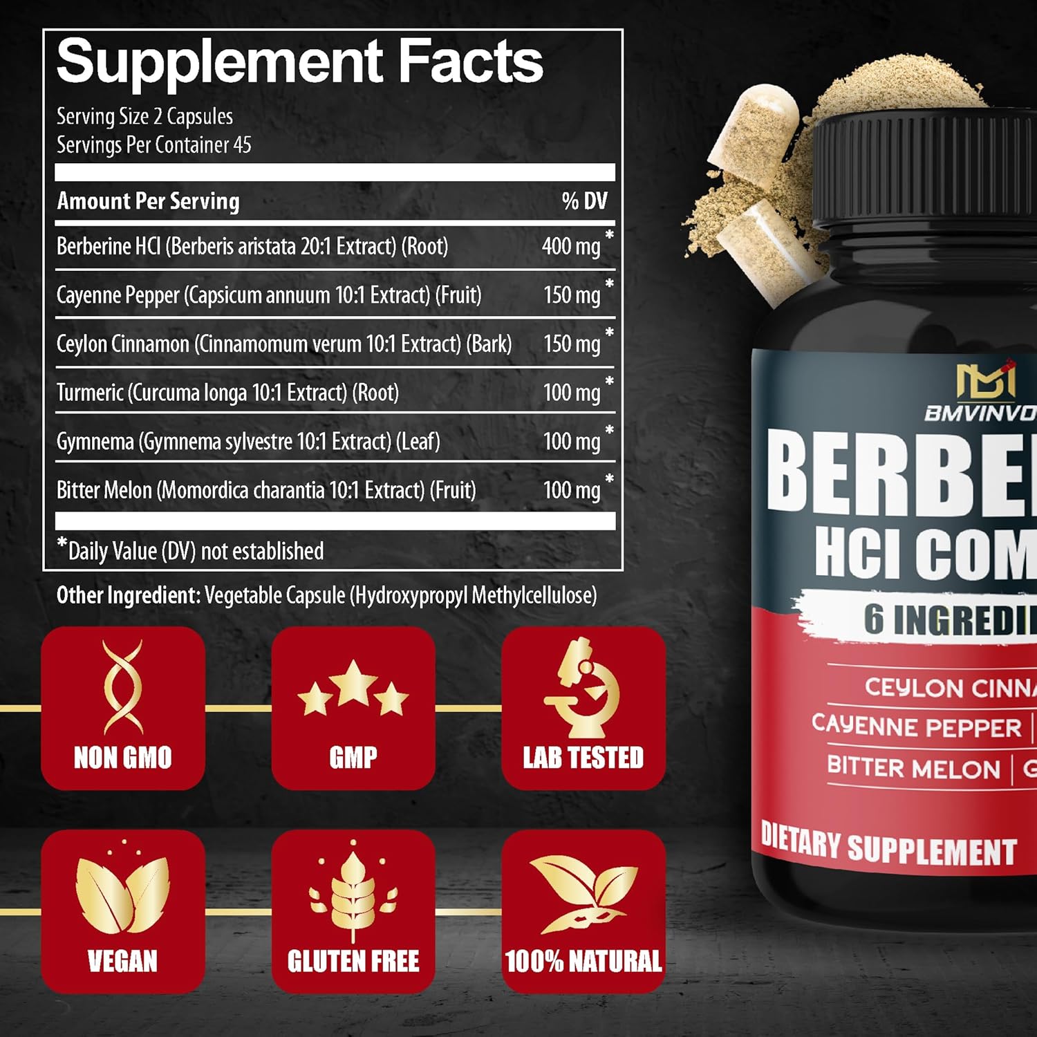 6-in-1: Berberine, Cayenne Pepper, Ceylon Cinnamon, Turmeric, Gymnema, and Bitter Melon