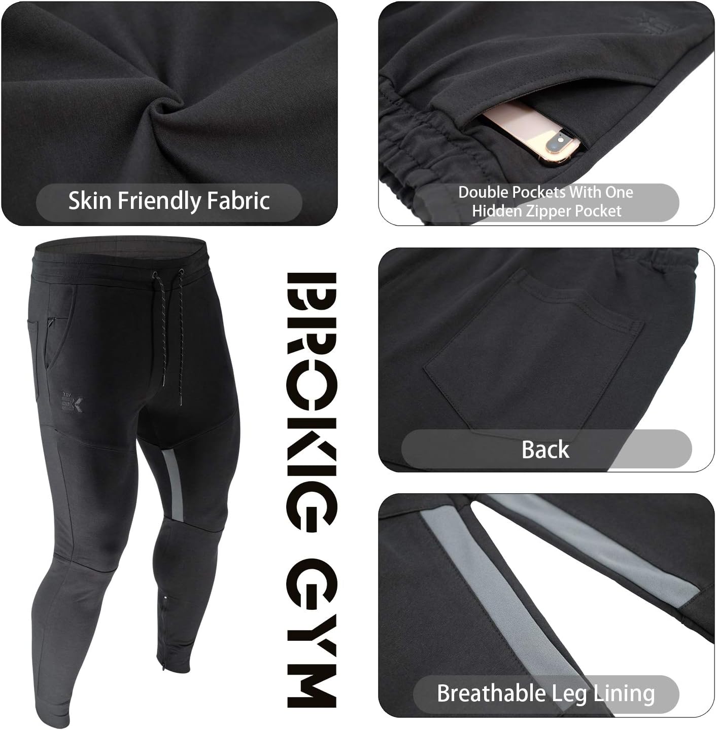 Athletic fit Gym Pants with skin friendly surface, Regular thighs without friction and irritation.Right hidden zipper pocket to carry your phone or wallet when on the go.Stylish design of tapered leg and Metal-tipped elastic waistband.Joggers for Gym Workout Work Casual.