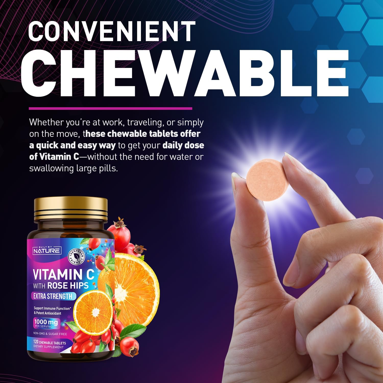 1000mg Vitamin C with Rose Hips: For extra strength immune support.