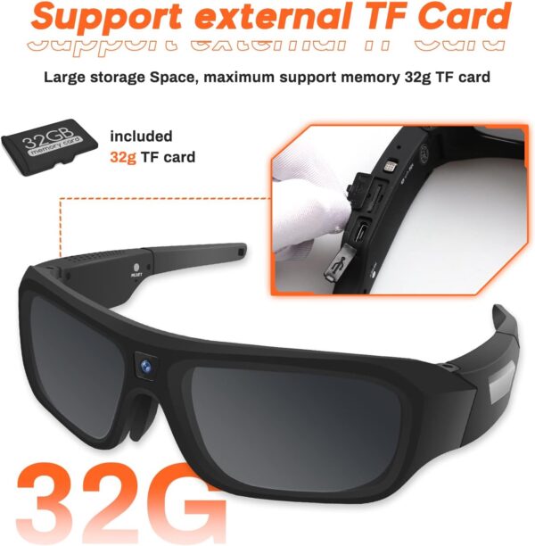A Cool Video Sunglasses Recorder Camera with UV Protection Polarized Lens.Not only does it look fashion, but also it can protect your eyes from harmful UV rays and record amazing video & photo