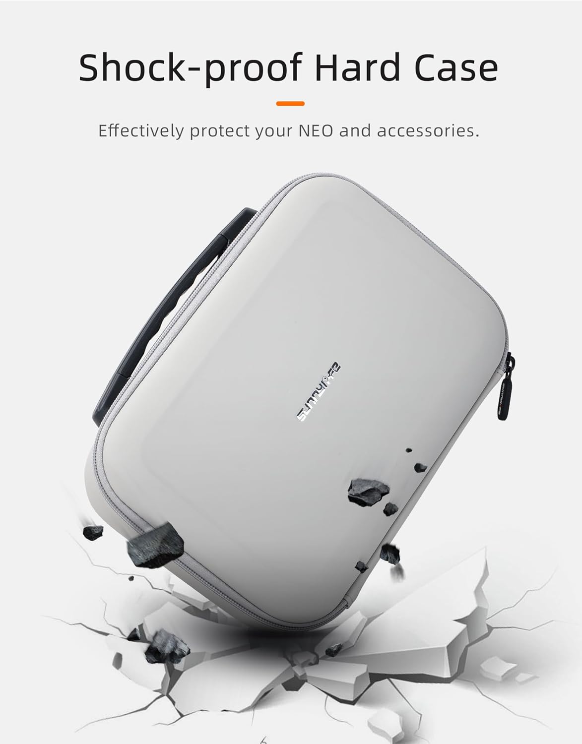 Large Capacity: It can organize Neo drone, RC-N3 controller, 4x batteries(one on the drone), two-way charging hub, filter set, propellers, cable and other accessories