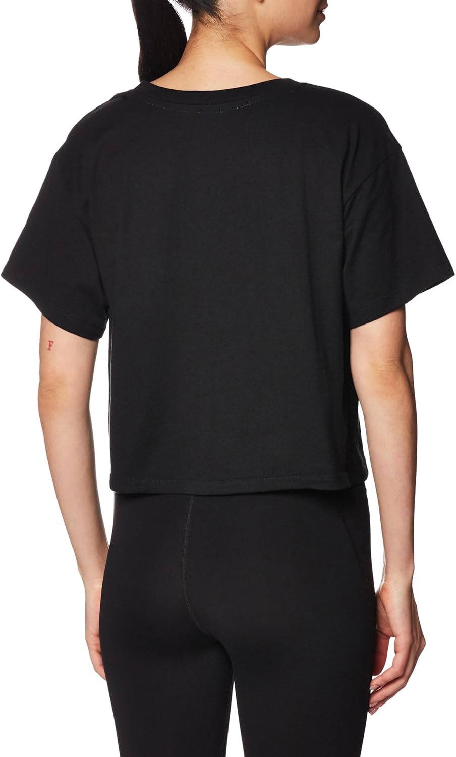A BOXY BASIC. Our oversized-fit women’s t-shirt is extra roomy, bringing a relaxed look to your rotation. A trendy staple for every Champion’s closet, this cropped basic sits above the hips for a feminine feel. Crafted with a ring-spun cotton blend, it’s soft on the skin for all-day comfort. Heritage ribbed collar keeps the look sporty and stretches for easy-on, easy-off wear. The Classic script logo spans this cropped tee’s chest for an iconic look that pairs best with Champion joggers or leggings. The signature C logo patch hits the sleeve, sending an authentic, sporty vibe.