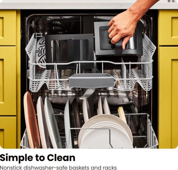 EASY CLEANUP: The removable, non-stick coated air fryer dual baskets are dishwasher safe and easy to clean after every use.