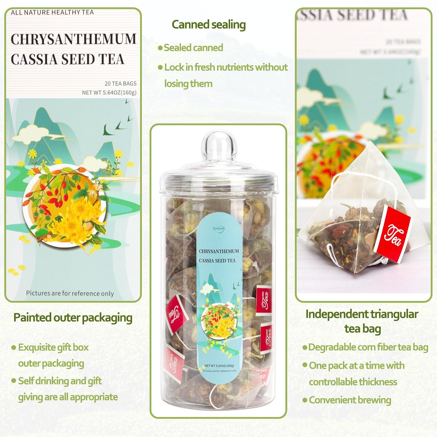 Each bag includes Six kinds of floral. Selected cassia seeds, burdock root, wolfberry, chrysanthemum, sweet-scented osmanthus, honeysuckle, combination of floral tea.